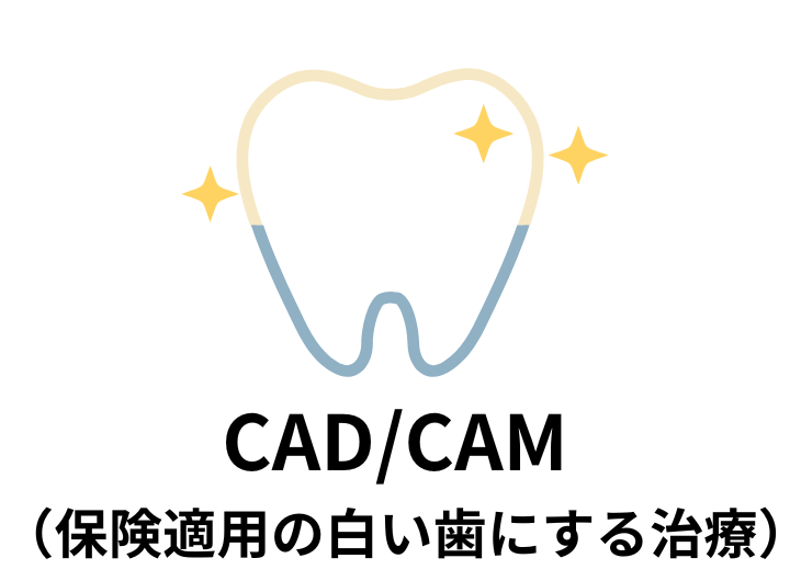 当院では、保険治療適用内で歯を白くする『CAD/CAMインレー』と『CAD/CAM冠』の治療を、全ての歯で対応します。